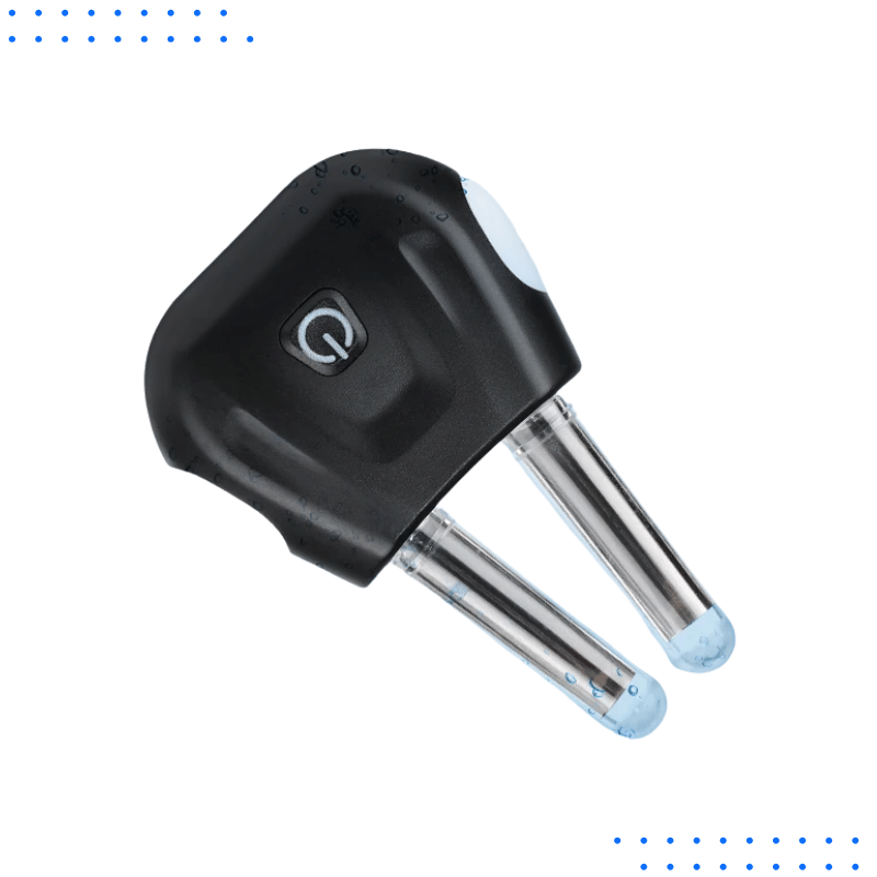 Base emits UVA, UVC, and blue light to kill harmful bacteria.